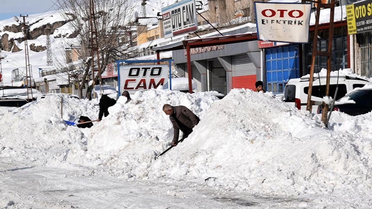 Erciş ilçesinde yaklaşık 5 kilometre mesafedeki sanayi sitesinde 400’den fazla esnaf faaliyet yürütüyor. İlçede kar kalınlığı merkezde 70 santimetre, yüksek kesimlerde ise 2 metreye kadar ulaştı. Yoğun kar nedeniyle 3 gün boyunca iş yerlerini açamayan esnaf, bugün küreklerle karları temizleyerek iş başı yaptı.