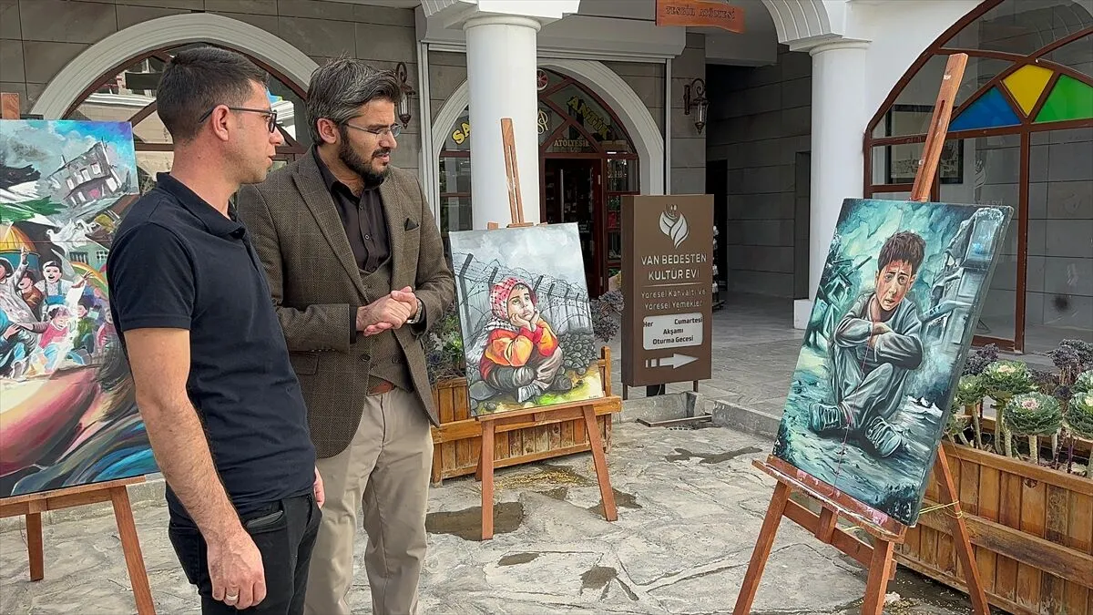 Van'da, Aksa Tufanı harekatının ikinci yıl dönümü dolayısıyla "Gazze" temalı resim sergisi açıldı.