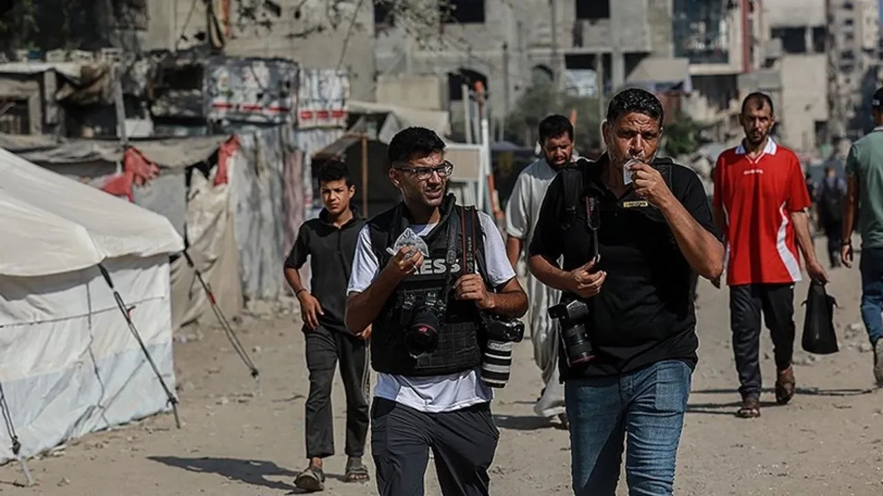 Gazze Şeridi’ndeki gazetecilerden Fransız Haber Ajansı (AFP) serbest foto muhabiri Beşar Taleb (ortada), kentteki açlık ve gıda krizine dikkat çekti.
