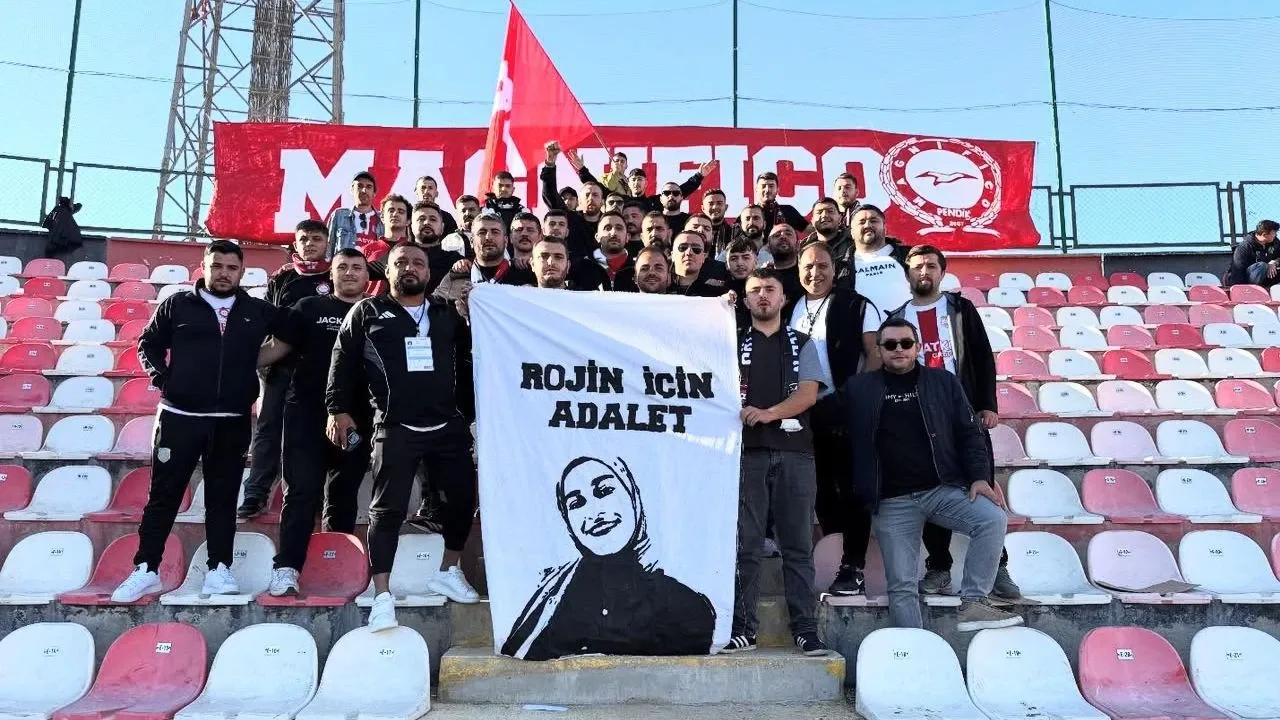 Deplasman tribününde yer alan Pendik Magnifico Taraftar Grubu, karşılaşma öncesi “Rojin Kabaiş’e Adalet” yazılı pankart açtı. Taraftarlar, genç üniversite öğrencisinin ölümüyle ilgili sürecin aydınlatılması ve faillerin yakalanması için adalet çağrısında bulundu.