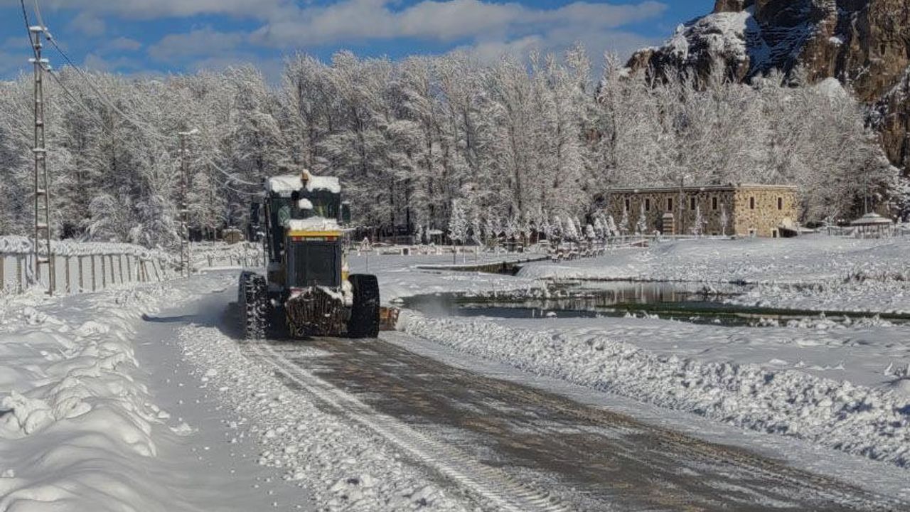 Karla mücadele ekipleri, kapalı yolların yeniden ulaşıma açılması için çalışmalarını aralıksız sürdürüyor.