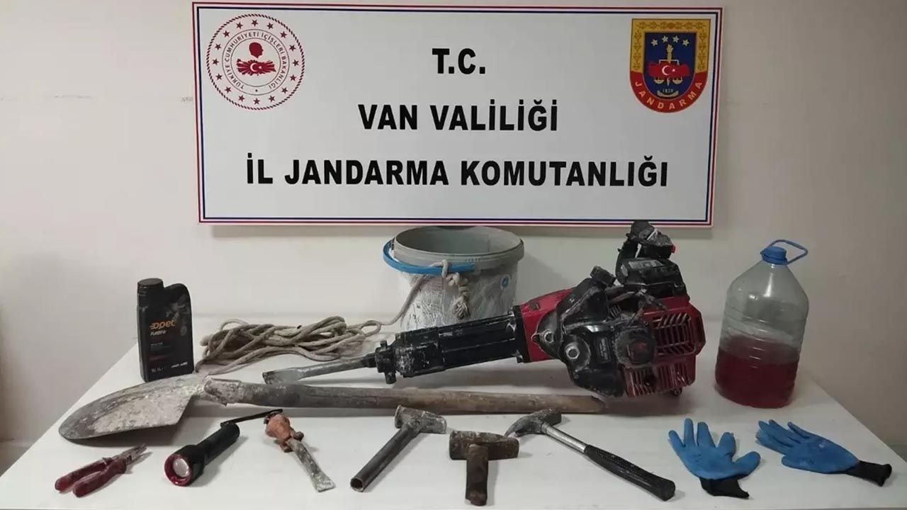 Belirlenen adrese düzenlenen operasyonda, kazıda kullanıldığı değerlendirilen hilti, kürek, benzin, motor yağı, 3 çekiç, murç ve kova ele geçirildi.
