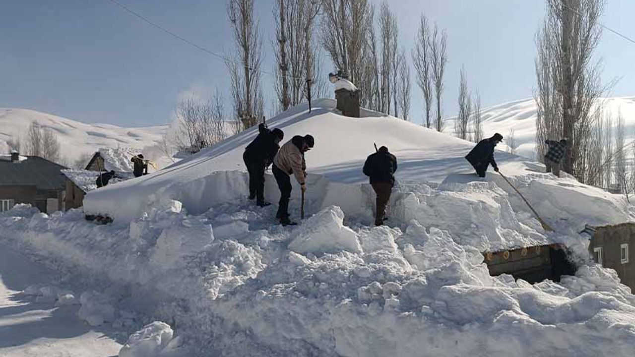 Havanın düzelmesiyle birlikte bir araya gelen köy sakinleri, yoğun yağış nedeniyle kar altında kalan köy camisinin damında biriken tonlarca karı küreklerle temizleditek katlı evlerin damlarını da temizledi.